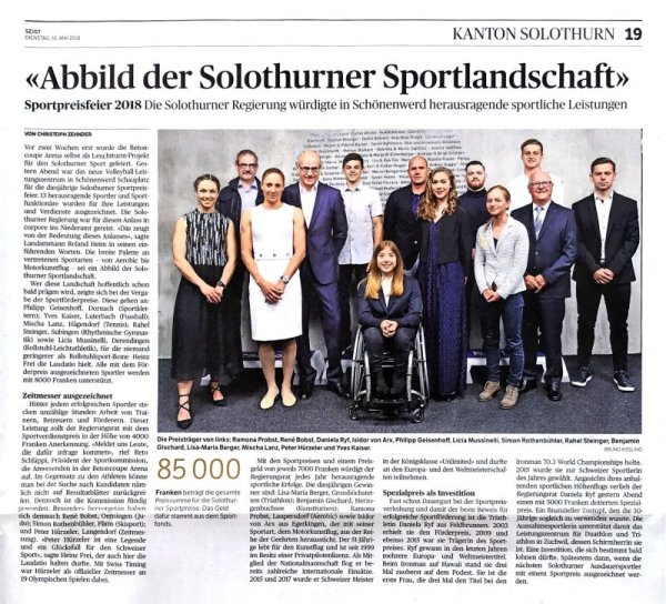 Online Bericht Solothurner Zeitung zur Sportförderungspreis Solothurn 2018